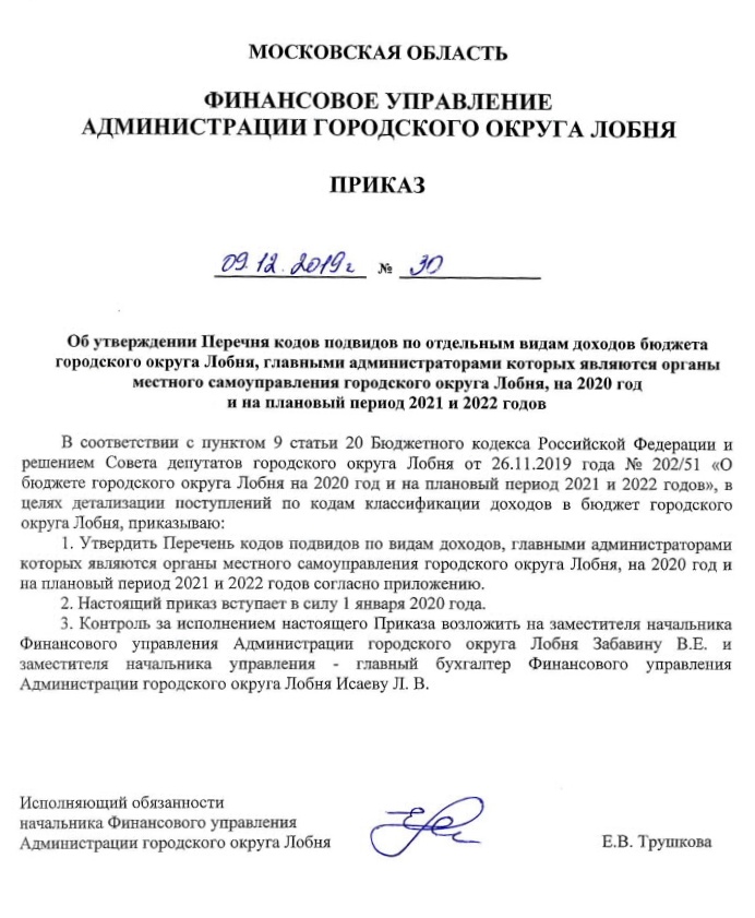 Об установлении перечня кодов и целевых статей расходов бюджета городского округа Лобня