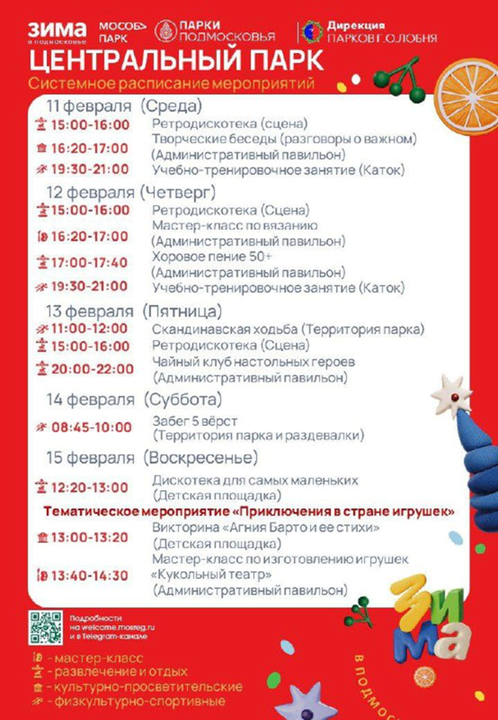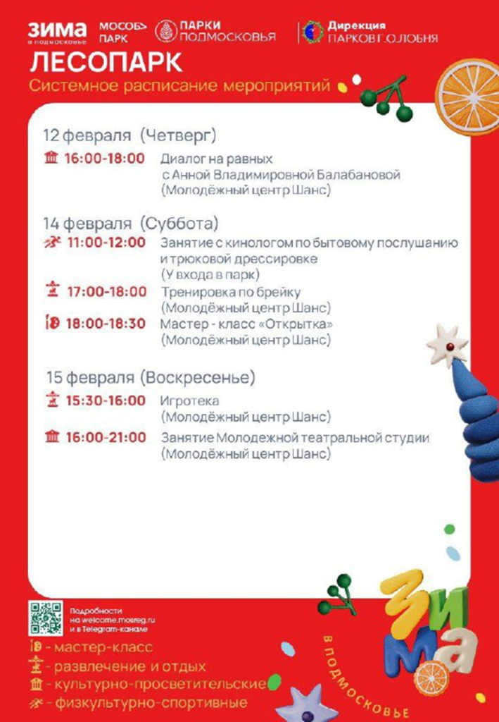 Также с 9 по 15 февраля в парках Лобни запланированы развлекательные и спортивные мероприятия.