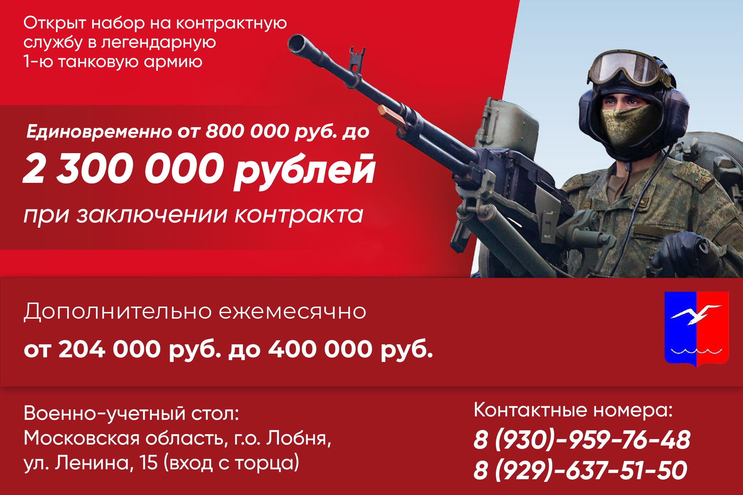 Военно-учетный стол: Московская область, г.о Лобня, ул. Ленина, д.15 (вход с торца)