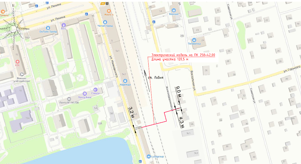 - участок кабельной линии электроснабжения пересекающей полотно железной дороги (от дома д. 5А корп. 5 по ул. Маяковского до жилых домов № 8, № 9 по ул. Железнодорожная), протяженностью 120,5 м.