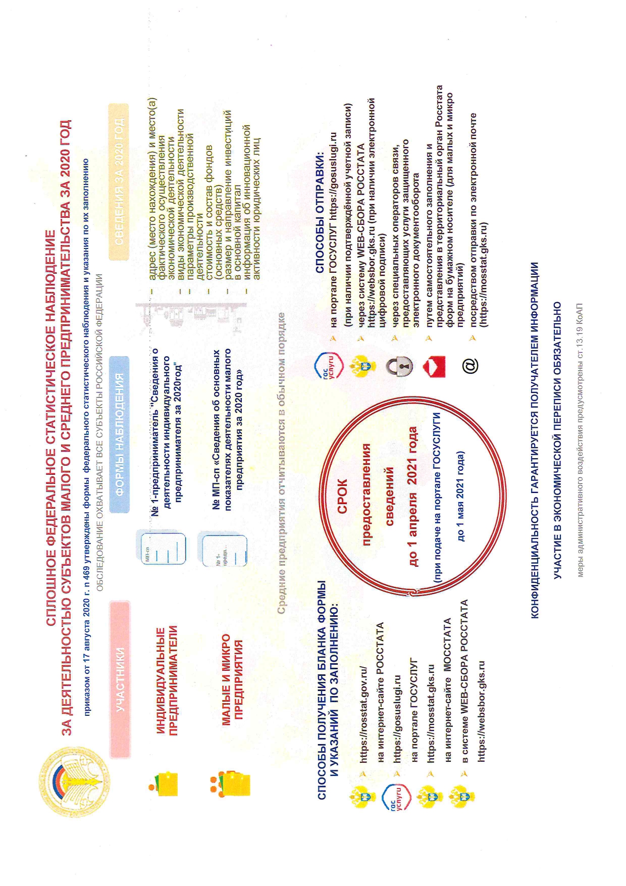 Сплошное статистическое наблюдение за деятельность субъектов МСП за 2020 год