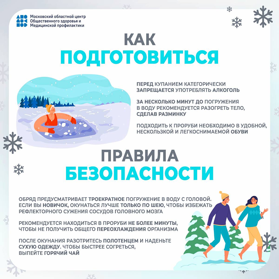 В Министерстве здравоохранения подготовили рекомендации как подготовиться к купаниям на Крещение и напомнили о правилах безопасности, которые помогут снизить риск нежелательных и опасных последствий для здоровья.