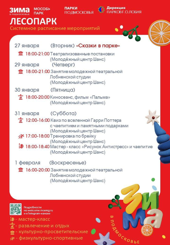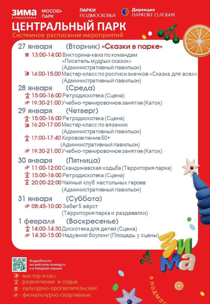 Также с 26 января по 1 февраля в парках Лобни запланированы развлекательные и спортивные мероприятия.