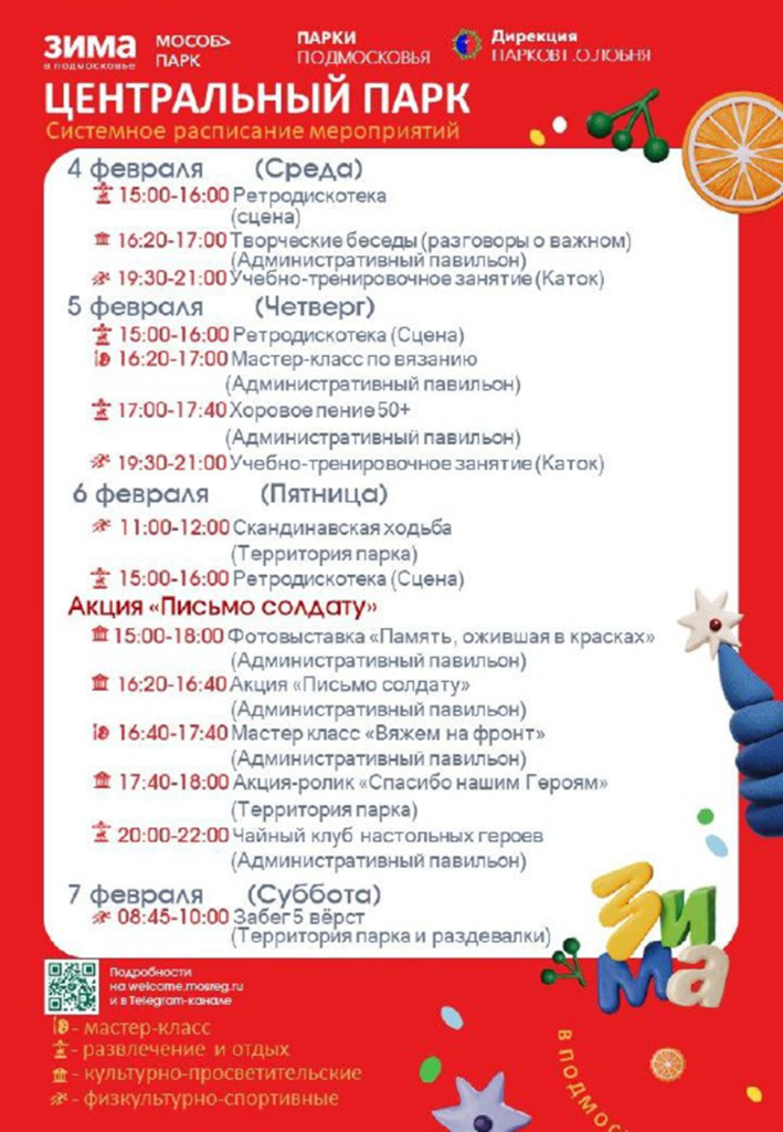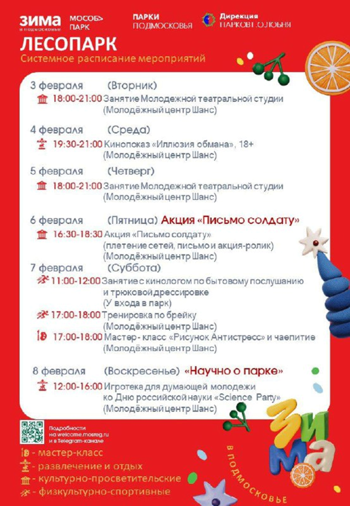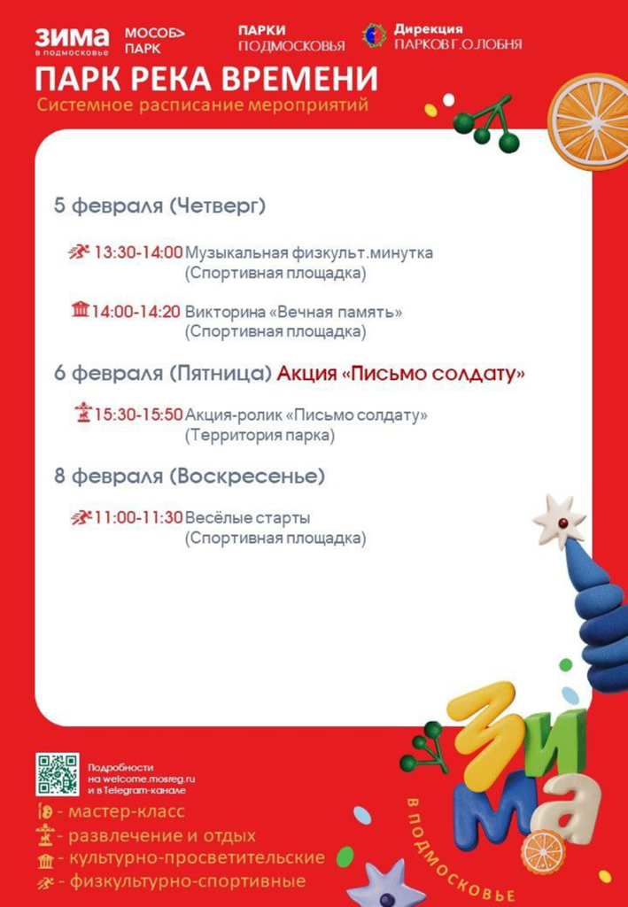 Также со 2 по 8 февраля в парках Лобни запланированы развлекательные и спортивные мероприятия.