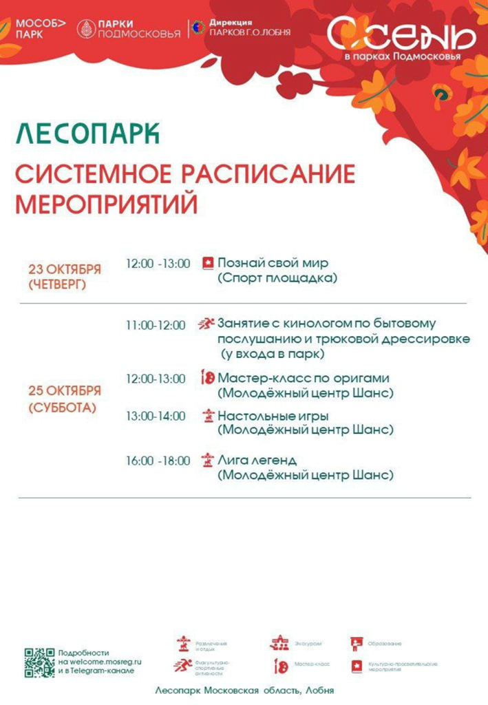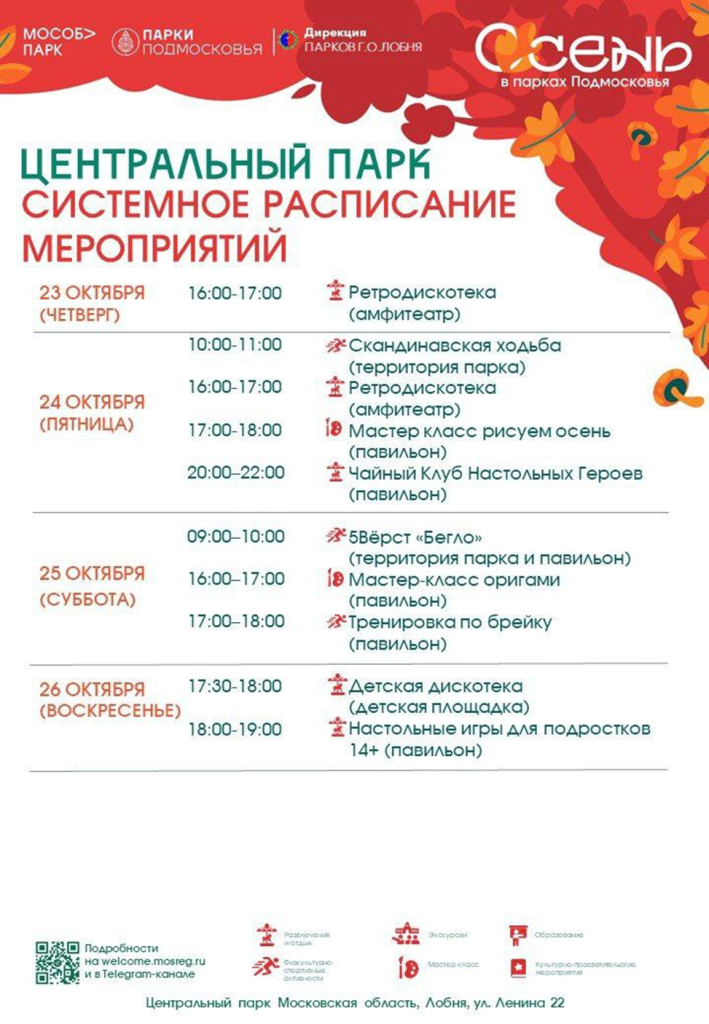 С 20 по 26 октября в парках Лобни запланированы развлекательные и спортивные мероприятия.