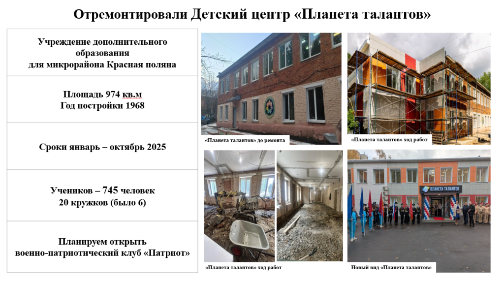 | Модернизируем детских площадок до конца года | 2 шт |