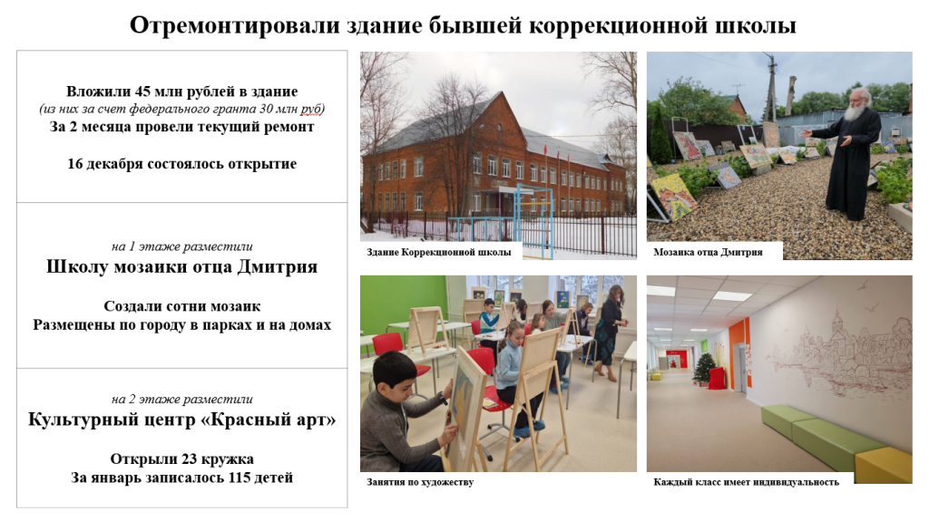 | Реконструирован Центральный парк (центральная часть, карусели, кафе, каток, площадка для выгула собак) | |